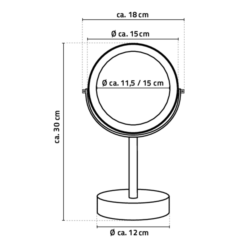 Parametry produktu  DAISY kosmetické zrcátko na postavení LED, O 150mm, oboustranné, chrom