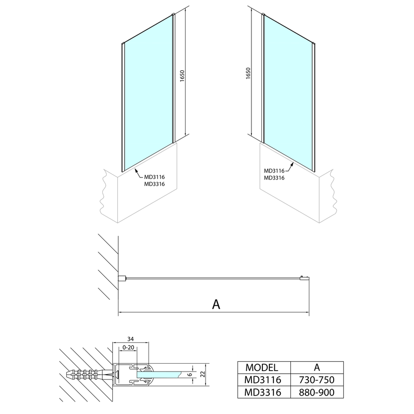 Parametry produktu  DEEP boční stěna 750x1650mm, čiré sklo