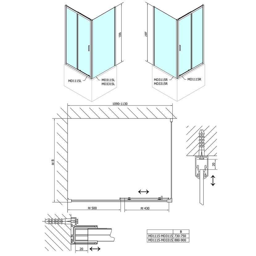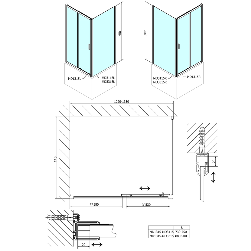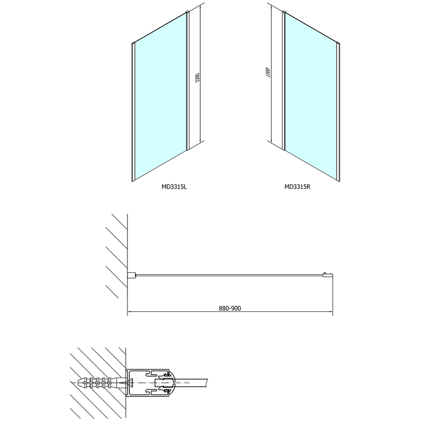 Parametry produktu  DEEP boční stěna 900x1500 cm, čiré sklo