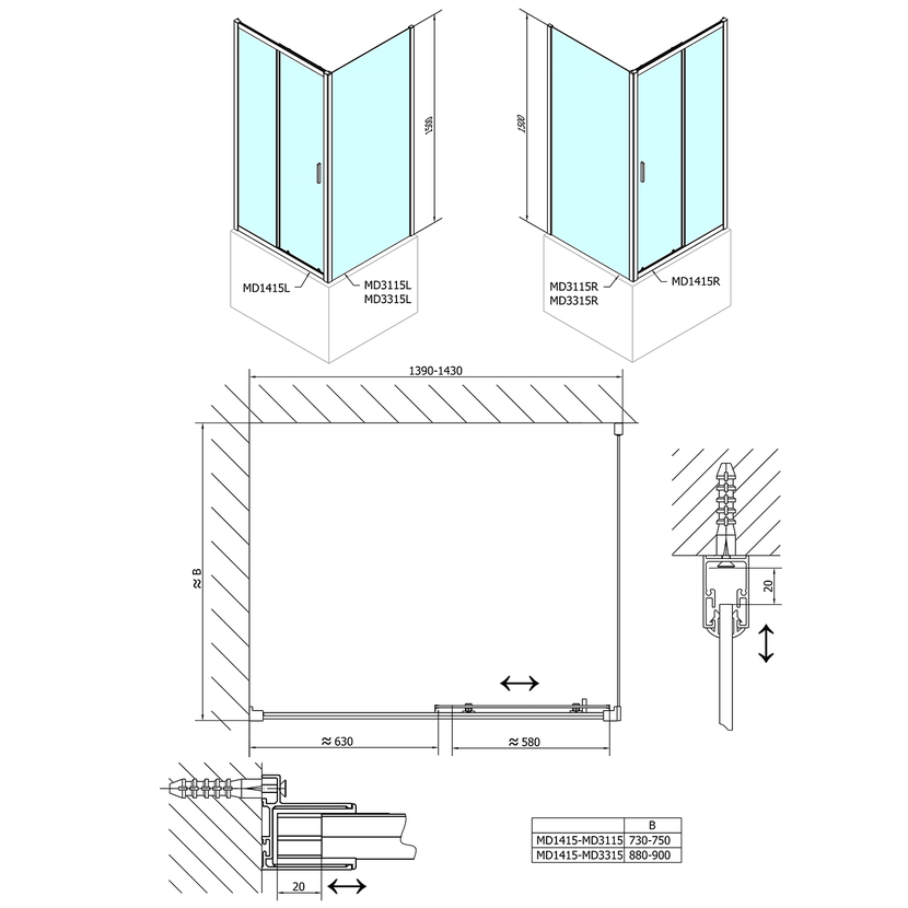 DEEP boční stěna 900x1500 cm, čiré sklo