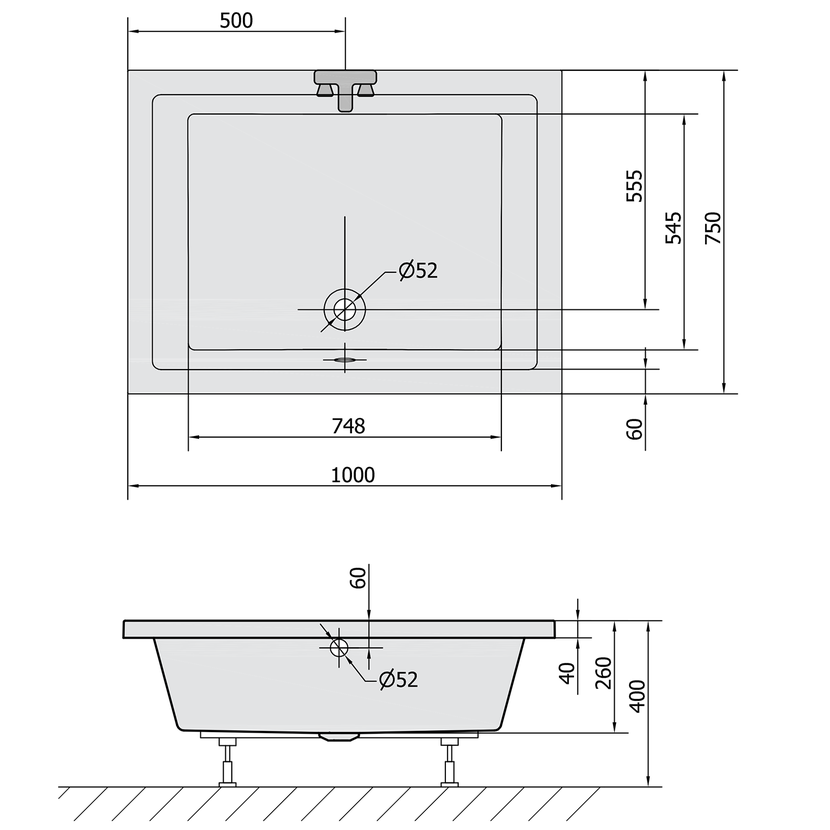 Parametry produktu  DEEP hluboká sprchová vanička, obdélník 100x75x26cm, bílá
