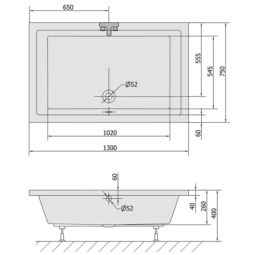 Parametry produktu  DEEP hluboká sprchová vanička, obdélník 130x75x26cm, bílá