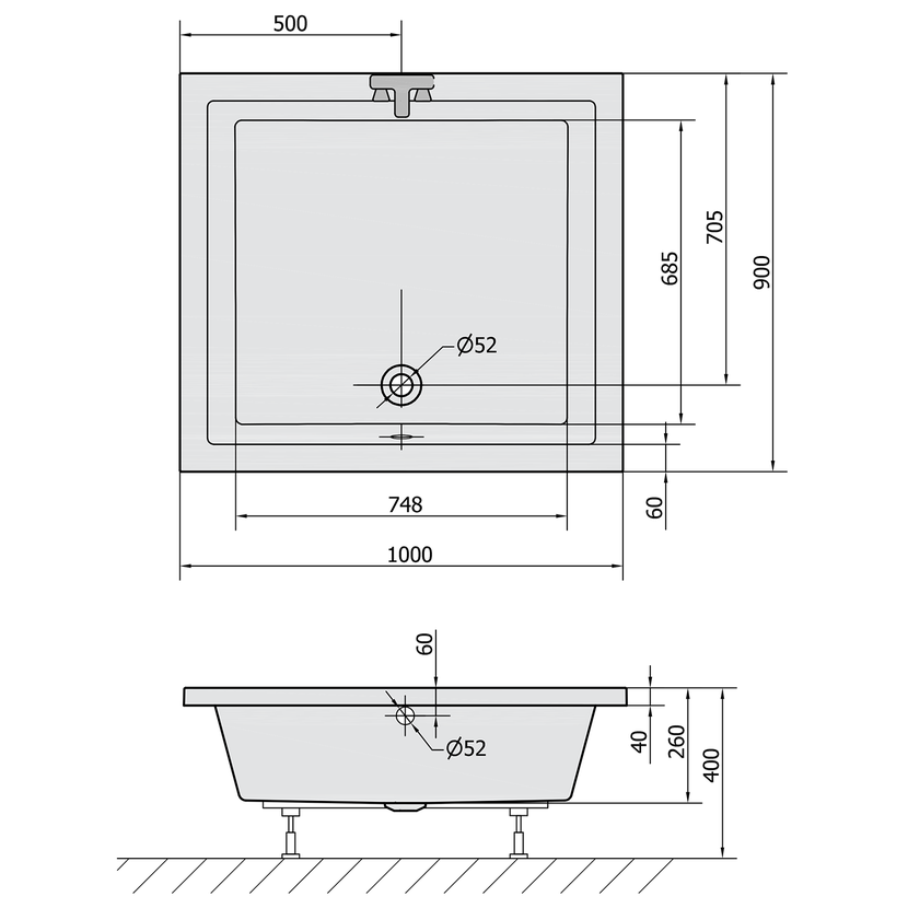 Parametry produktu  DEEP hluboká sprchová vanička s konstrukcí, obdélník 100x90x26cm, bílá
