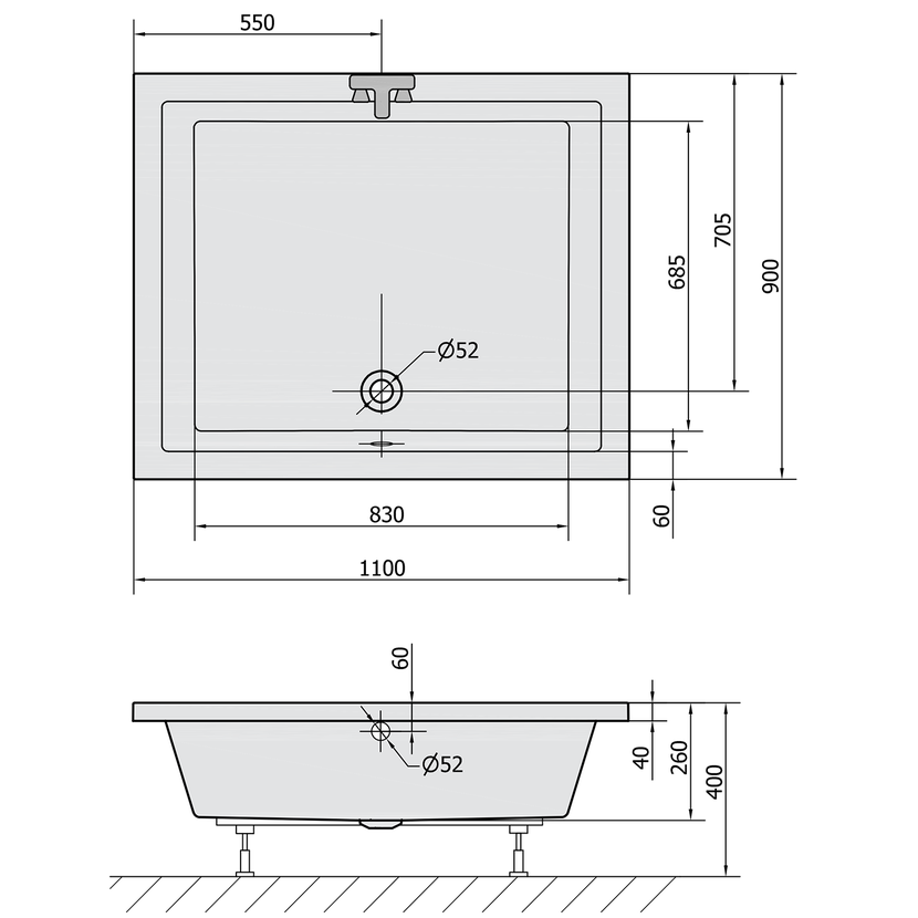 Parametry produktu  DEEP hluboká sprchová vanička s konstrukcí, obdélník 110x90x26cm, bílá