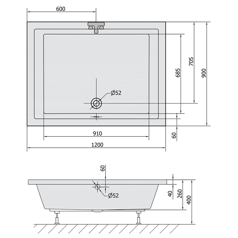 Parametry produktu  DEEP hluboká sprchová vanička s konstrukcí, obdélník 120x90x26cm, bílá