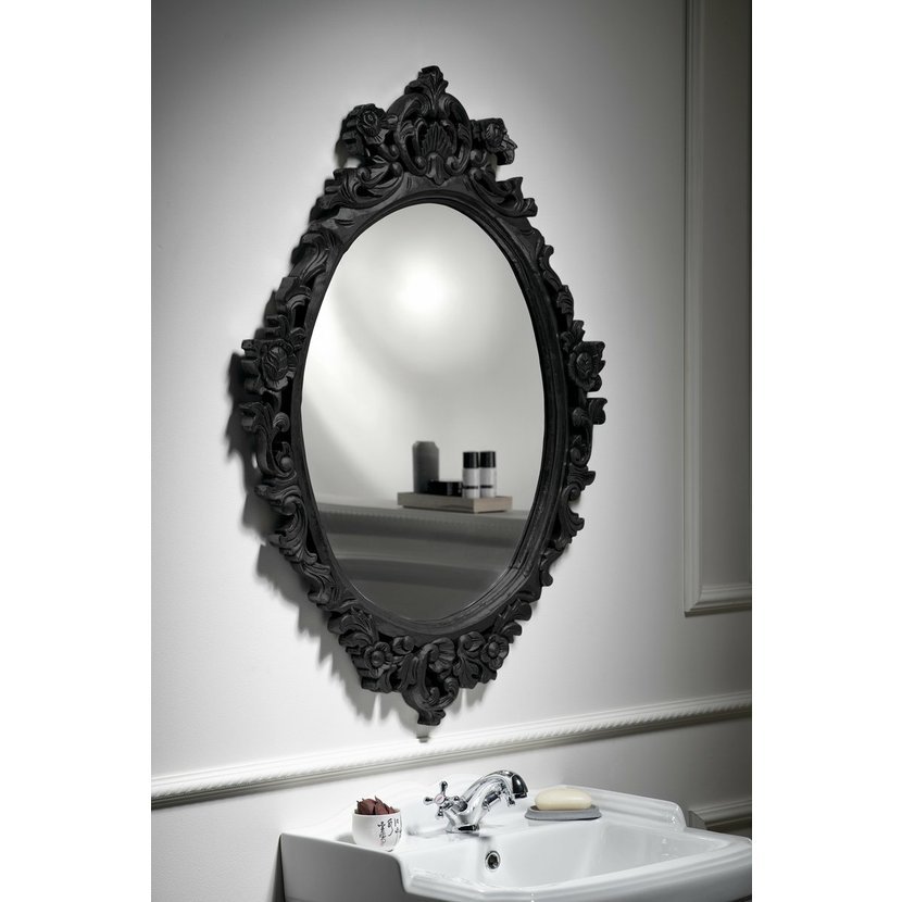 DESNA oválné zrcadlo ve vyřezávaném rámu, 80x100cm, černá IN357