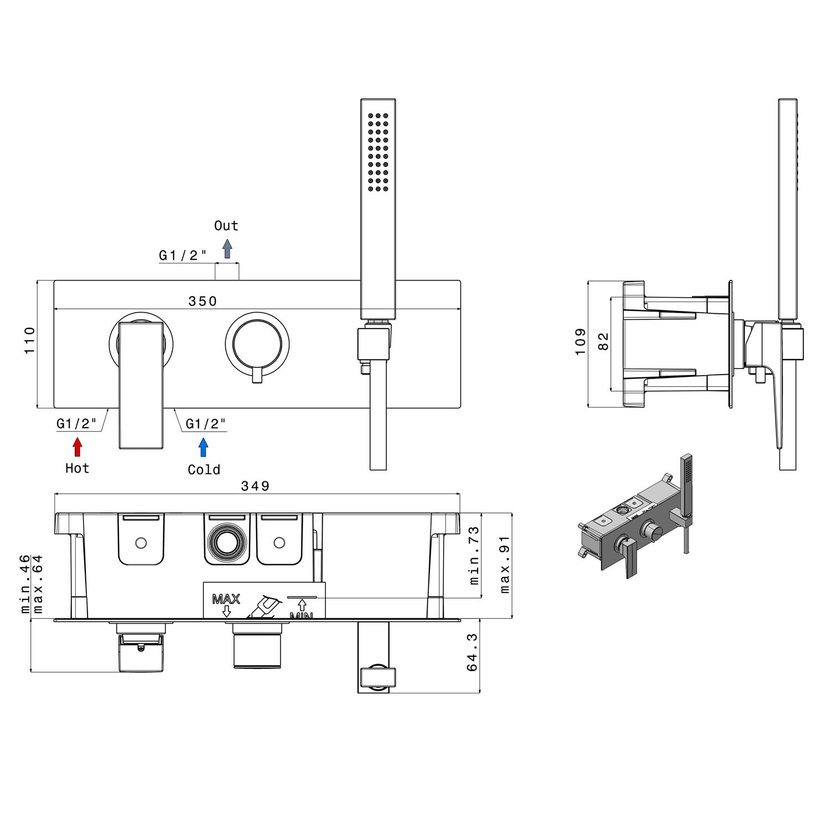 Parametry produktu DIMY podomítková sprchová baterie s ruční sprchou, 2 výstupy, černá mat
