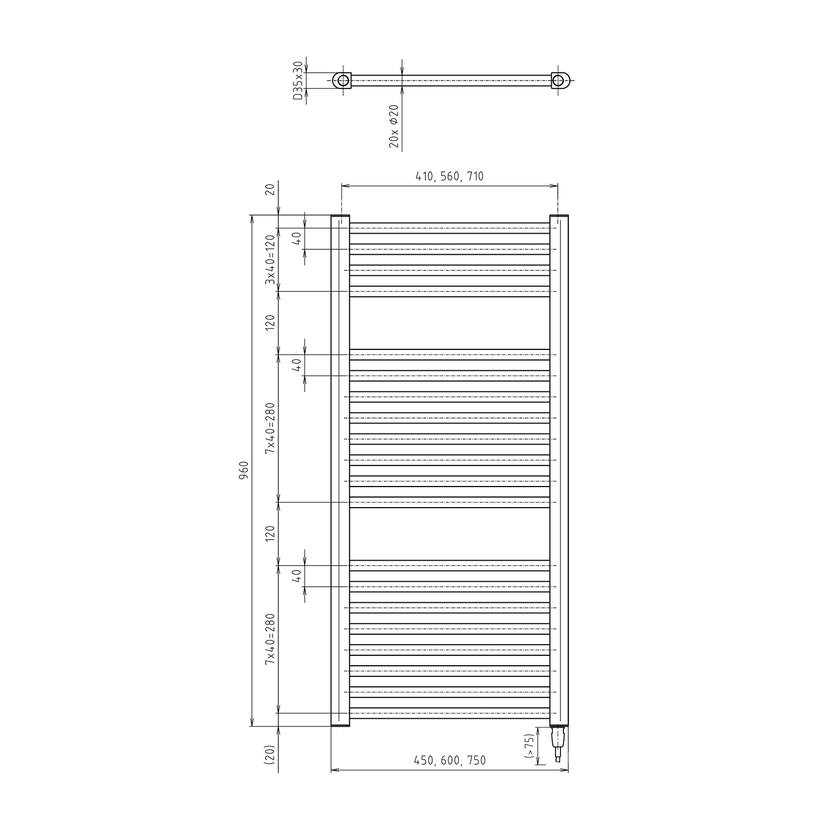 - Topná tyč je instalována na pravé straně radiátoru. Pokud potřebujete elektrický přívod na druhé straně, lze prohodit topnou tyč a zátku.