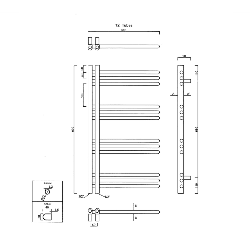 Designově tvarované koupelnové otopné těleso s výjimečným vzhledem je vyrobeno z ocelových trubek. U radiátoru oceníte zejména jeho praktičnost, díky své konstrukci umožňuje jednoduché a pohodlné zavěšení ručníků ze strany na horizontální tyče. Praktická rozteč 50 mm středového připojení umožňuje kombinovat s designovými ventily z naší nabídky i v kombinaci s elektrickou topnou tyčí. Radiátor je univerzální, lze ho zavěsit oboustranně, můžete si tak zvolit levou nebo pravou variantu.