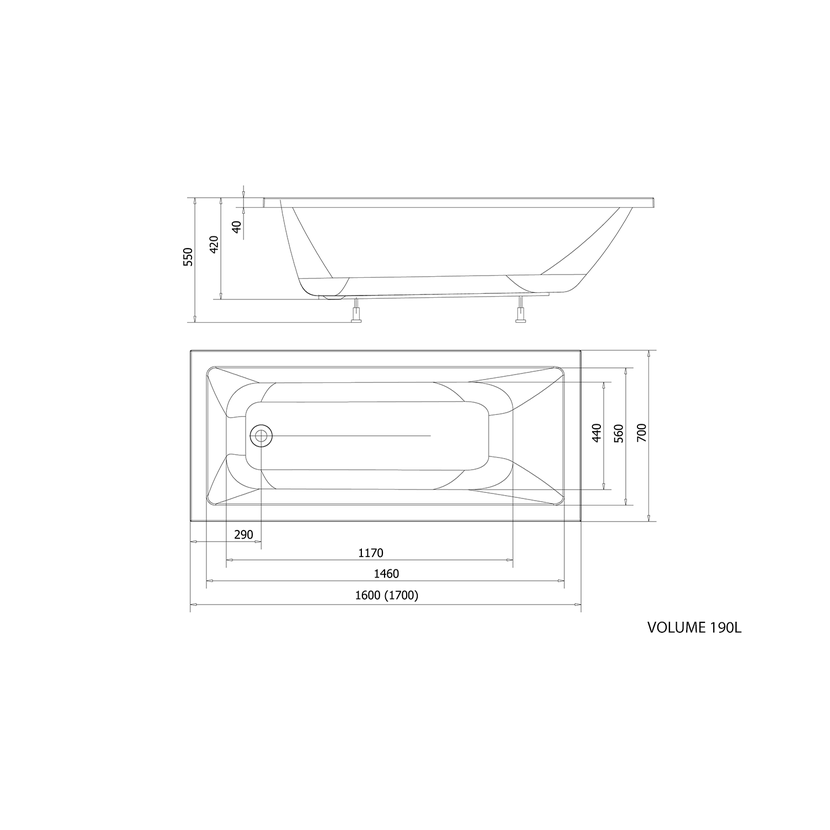 Parametry produktu DOUBRAVA obdélníková vana 170x70x42cm, bílá