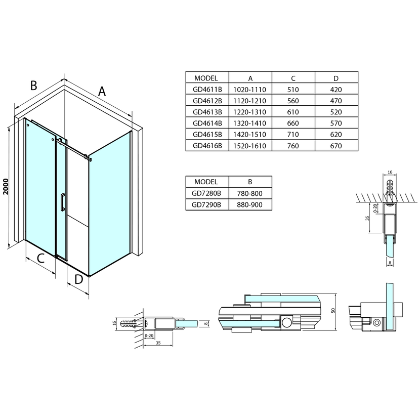 • Pro vyšší stabilitu doporučujeme instalovat zástěnu se vzpěrou GDV300/GDV300B