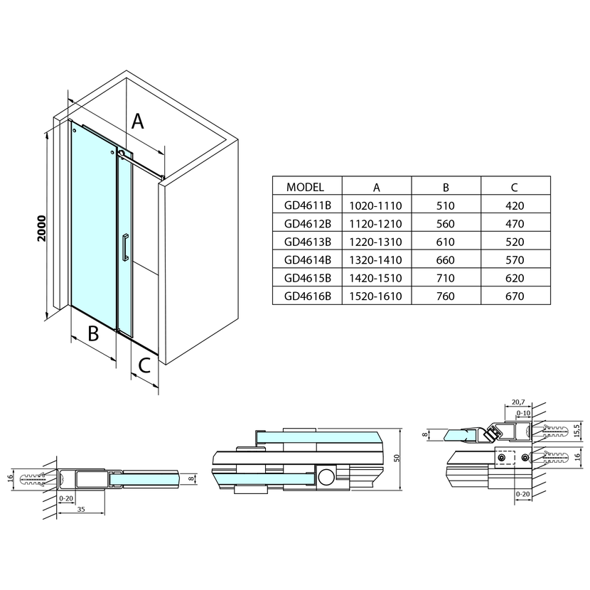 - Pro vyšší stabilitu doporučujeme instalovat zástěnu se vzpěrou GDV300/GDV300B