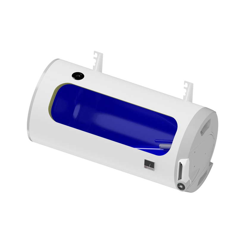 Elektrický akumulační ohřívač s vodorovnou pracovní polohou do prostor s nedostatkem místa o objemech 100–200 litrů. Ohřívač může být upevněn na zdi pomocí dodávaných konzolí nebo připevněn pomocí závěsů vodorovné poloze ke vhodné konstrukci (nutno přiobjednat ). Vždy je třeba počítat s místem nad a pod ohřívačem pro montáž přívodního potrubí. Ohřev zajišťuje keramické topné těleso ovládané provozním termostatem a jištěné bezpečnostním termostatem (tepelnou pojistkou).