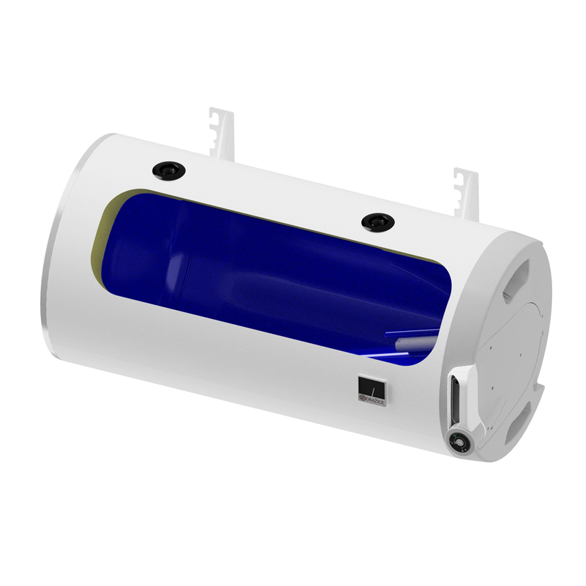 Kombinovaný akumulační ohřívač s vodorovnou pracovní polohou do prostor s nedostatkem místa o objemech 125–200 litrů. Ohřívač může být upevněn na zdi pomocí dodávaných konzolí nebo připevněn ve vodorovné poloze ke vhodné konstrukci pomocí závěsů( nutno přiobjednat ). Vždy je třeba počítat s dostatkem místa nad a pod ohřívačem pro montáž přívodního potrubí. Možnosti ohřevu Elektrickou energií. Keramické topné těleso ovládané provozním termostatem a jištěné bezpečnostním termostatem (tepelnou pojistkou).