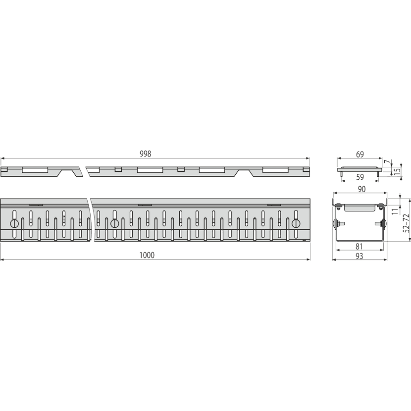 Drenážní žlab 100 mm nastavitelný + Rošt pro vložení dlažby, pozinkovaná ocel ADZ104V-1000