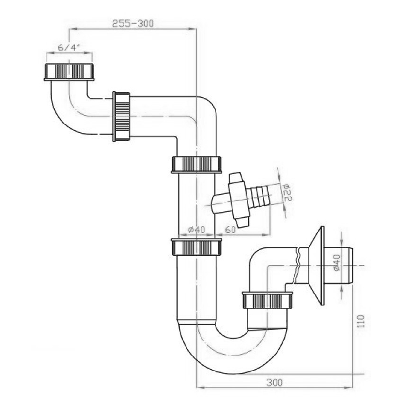 Parametry produktu  Dřezový sifon šetřící místo s odbočkou 6/4", DN40, bílá