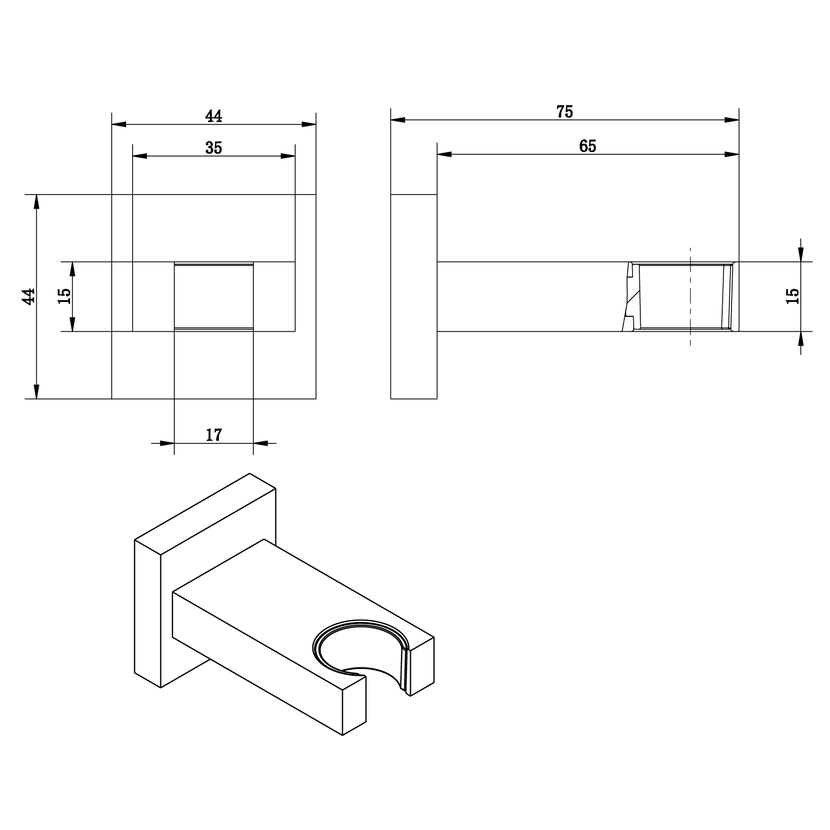 Parametry produktu  Držák sprchy hranatý, pevný, chrom