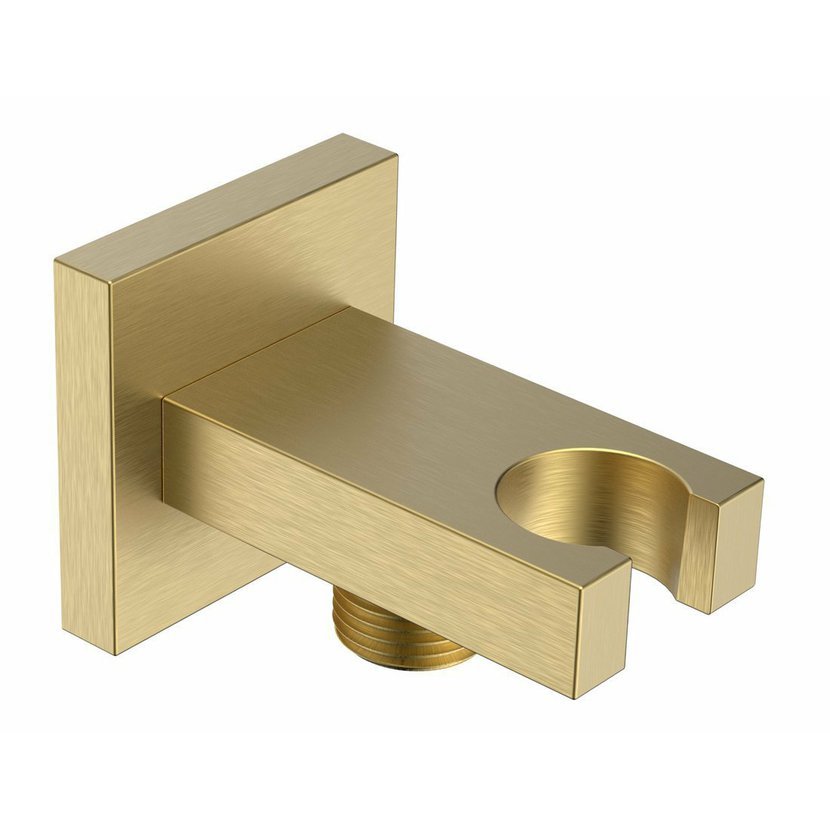 Držák sprchy hranatý, pevný, s vyústěním, zlato mat