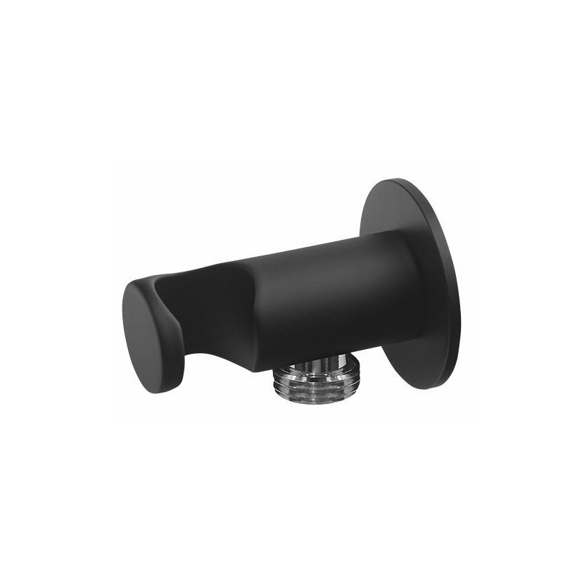 Držák sprchy kulatý, pevný, s vyústěním, černá mat