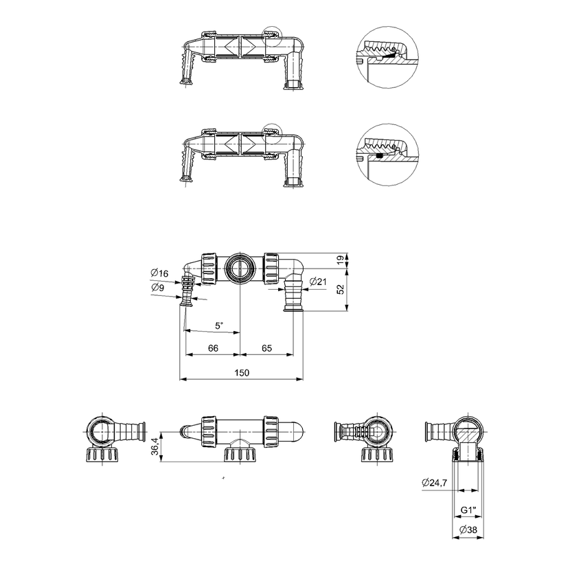 Parametry produktu  Dvojkolínko podomítkového sifonu, pro pračku a sušičku/myčku, bílá