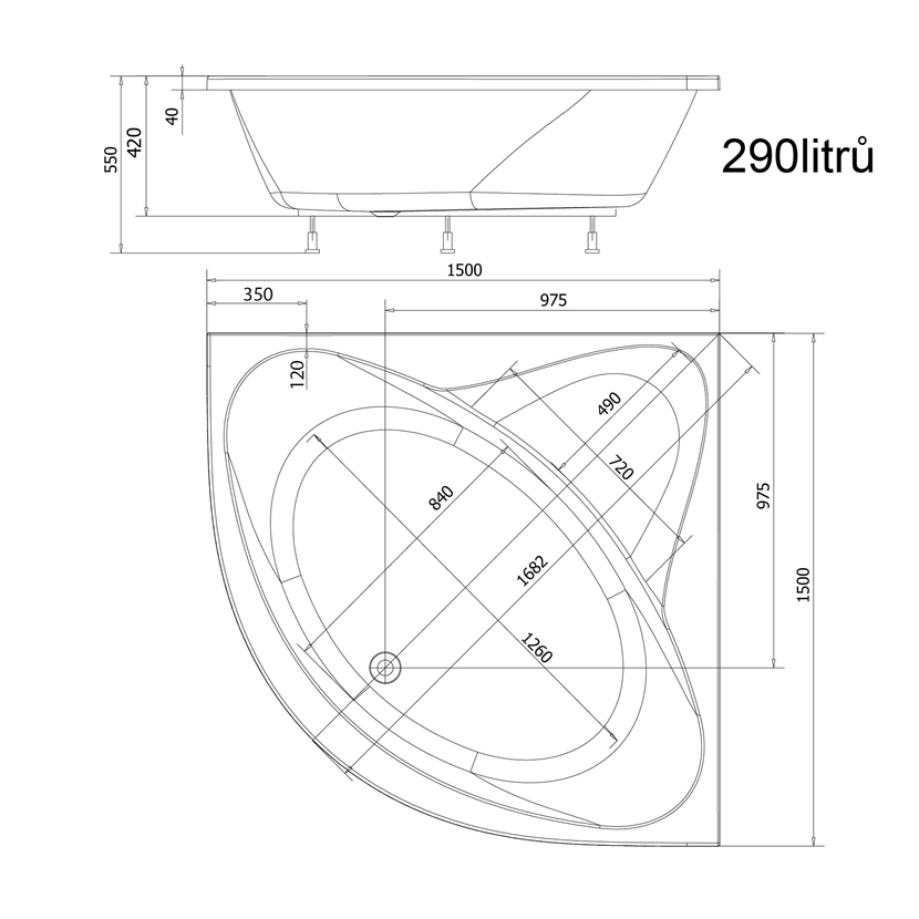 Parametry produktu  DYJE rohová vana 150x150x42cm, bílá