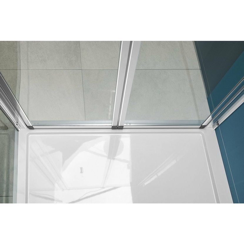- Čtvercové zástěny s dvoudílnými posuvnými dveřmi, rohový vstup