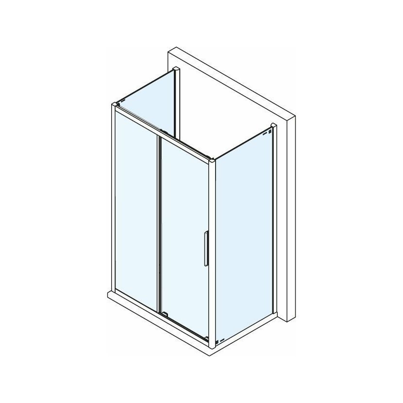 - Čtvercové zástěny s dvoudílnými posuvnými dveřmi, rohový vstup