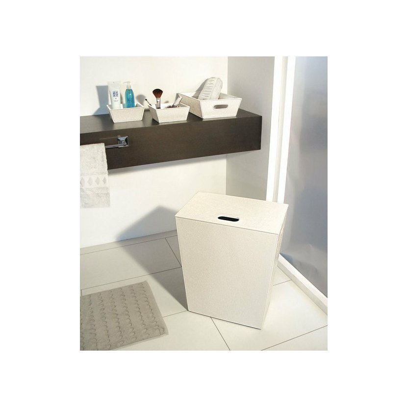 Stylové doplňky pro koupelnu v moderních barvách, vyrobené ze dřeva potaženého syntetickou kůží. Dokonalé zpracování je podtrženo ozdobným švem. Prádelní koš ECO PELLE se stane nepostradatelnou součástí koupelny.