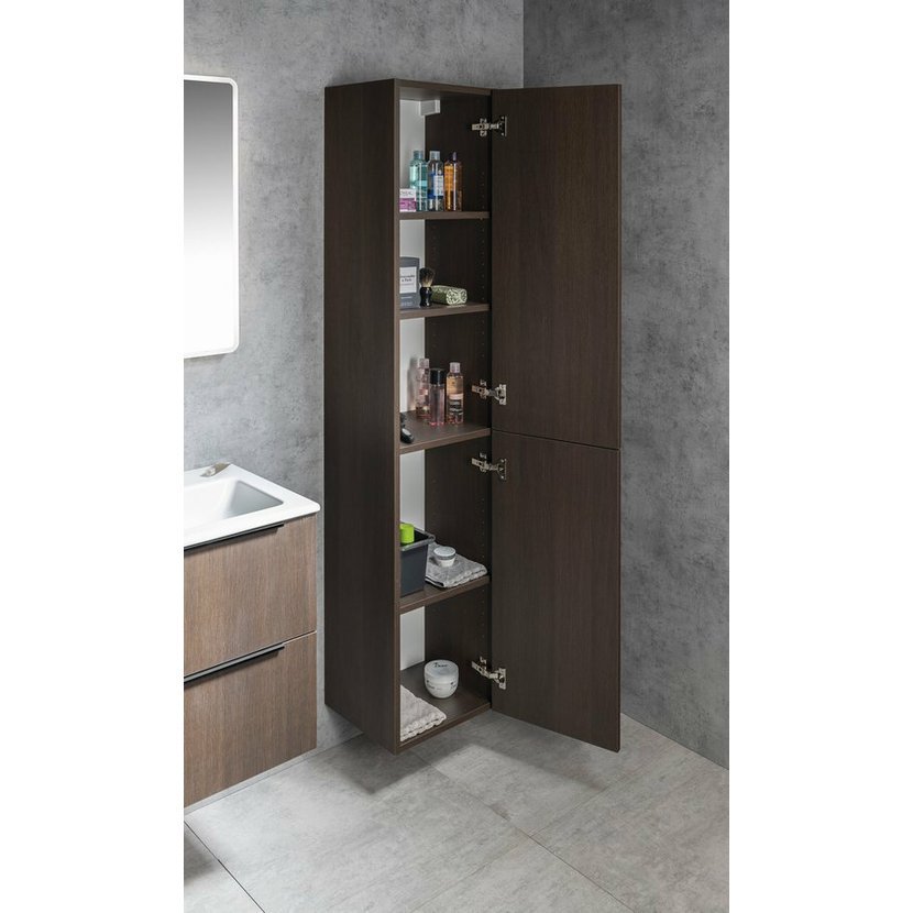 Charakteristickým rysem série doplňkových skříněk ESPACE je variabilita díky široké nabídce rozměrů jak dvířkových, tak otevřených skříněk. Série ESPACE byla navržena pro kombinaci s většinou umyvadlových skříněk z naší nabídky, avšak skříňky naleznou využití i v jiných prostorách než je koupelna (obývací pokoj, předsíň apod.). Skříňky nabízíme v barevném provedení a dekorech lamina se strukturou dle vzorníku. K některým skříňkám lze dokoupit samostatnou vnitřní zásuvku, případně vyjímatelný a pratelný látkový prádelní koš na suchý zip. Skříňky lze instalovat jak s levým, tak s pravým otvíráním dvířek – pouhým otočením dvířek o 180° získáme potřebnou variantu. Skříňky jsou vybaveny systémem bezúchytkového otevírání BLUM® TIP-ON. Při použití úchytky se pouze neinstaluje systém TIP-ON uvnitř skříňky. Úchytky jsou v případě zájmu k dokoupení.