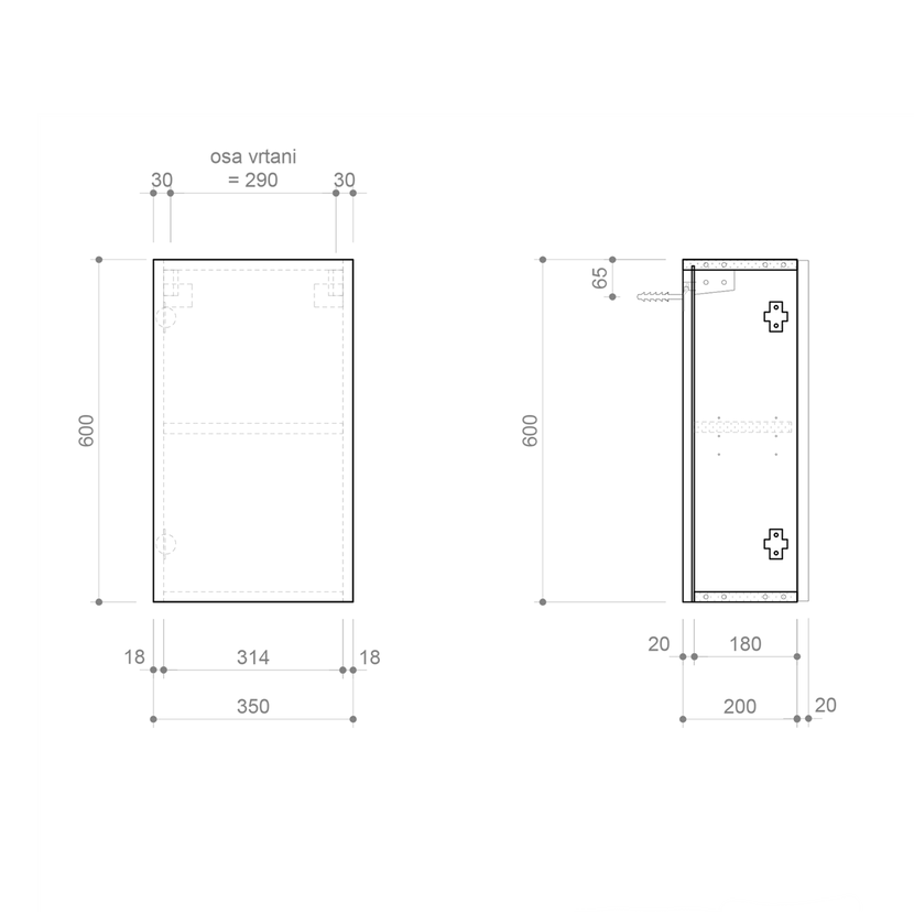Charakteristickým rysem série doplňkových skříněk ESPACE je variabilita díky široké nabídce rozměrů jak dvířkových, tak otevřených skříněk. Série ESPACE byla navržena pro kombinaci s většinou umyvadlových skříněk z naší nabídky, avšak skříňky naleznou využití i v jiných prostorách než je koupelna (obývací pokoj, předsíň apod.).