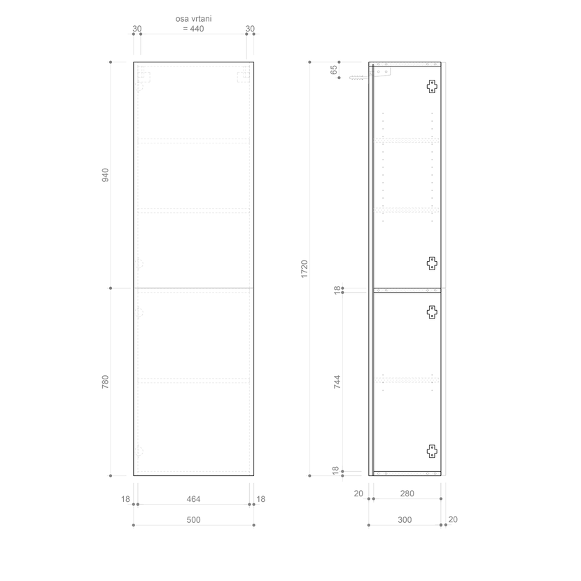 Parametry produktu ESPACE skříňka 50x172x32cm, 2x dvířka, levá/pravá, bílá lesk