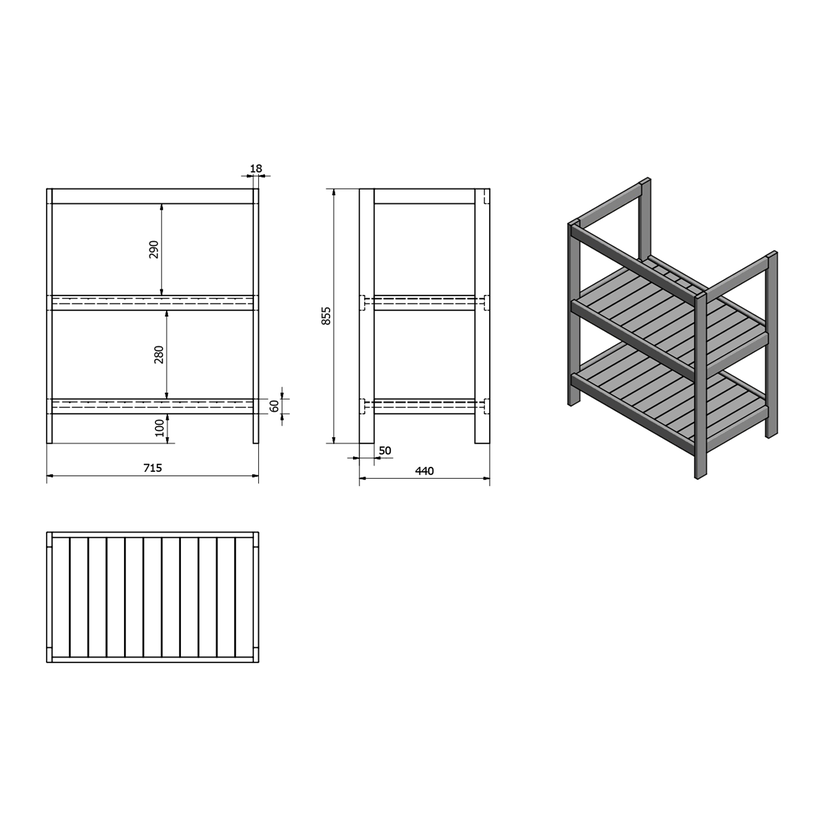 Umyvadlové skříňky doplňují koupelnové regály ve třech velikostech. Vysoký a nízký se čtvercovou základnou a nízký s obdélníkovou základnou. Regály lze postavit nejen v koupelně, ale i v jiných místnostech.