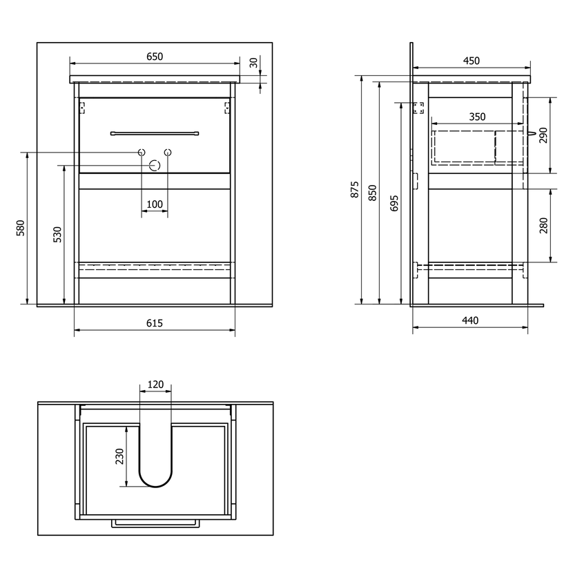 Parametry produktu ETIDE umyvadlová skříňka 61,5x85x44 cm, bílá mat