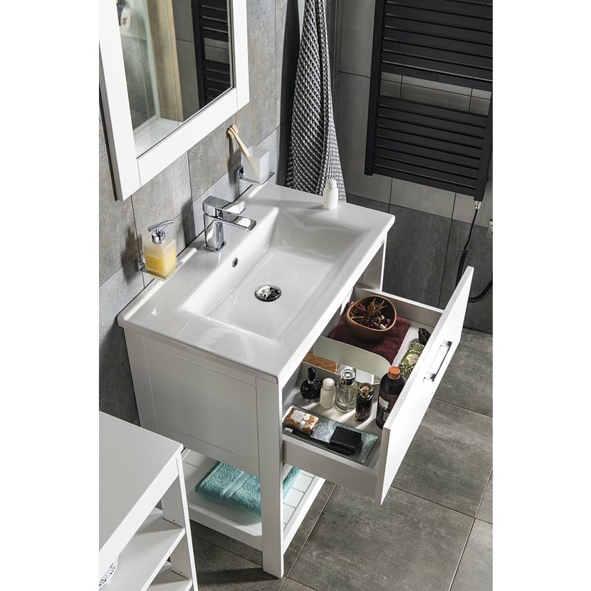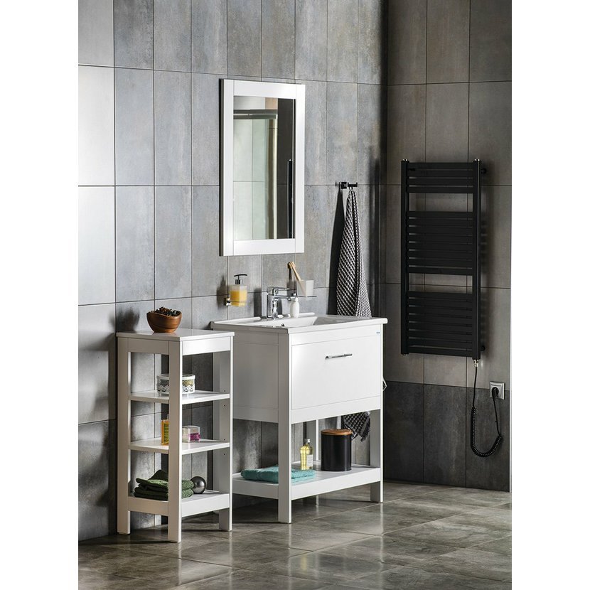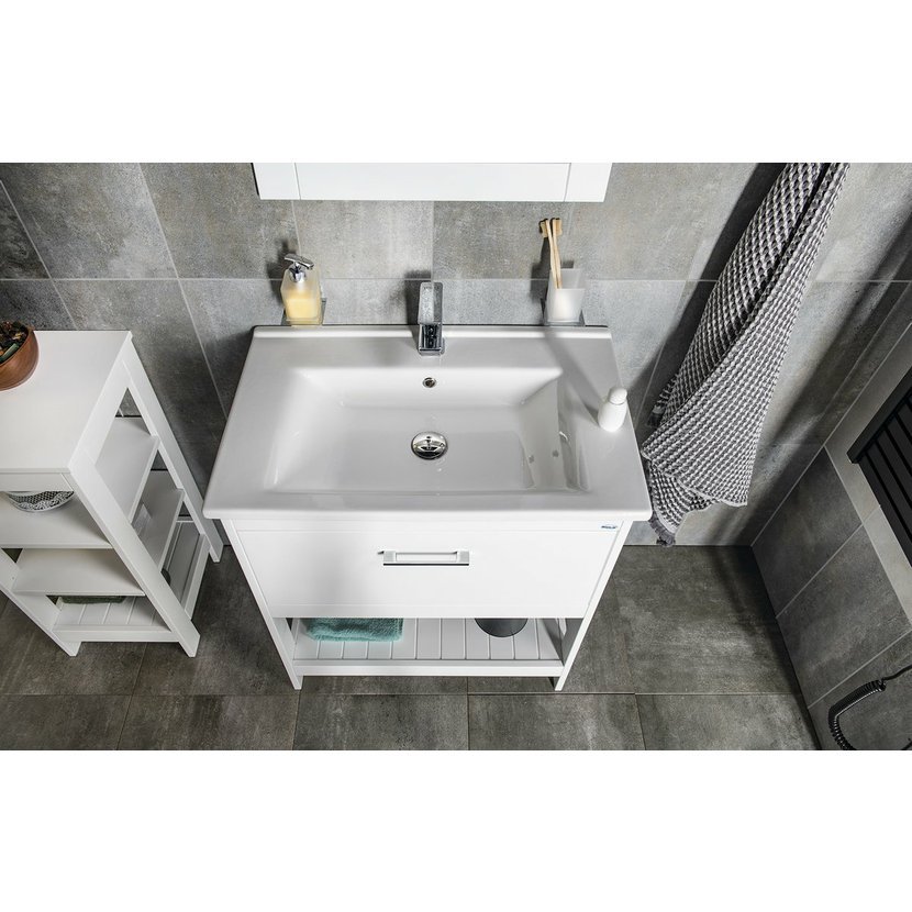 Série praktického policového nábytku ETIDE nabízí vzdušné a jednoduché řešení úložného prostoru pod oblíbenými umyvadly ZUNO a SAVA. Nábytek je vyroben z kvalitní MDF nalakované v moderním matně bílém odstínu. Působí odlehčeně a užitek i krásu přinese do koupelen různých stylů.
