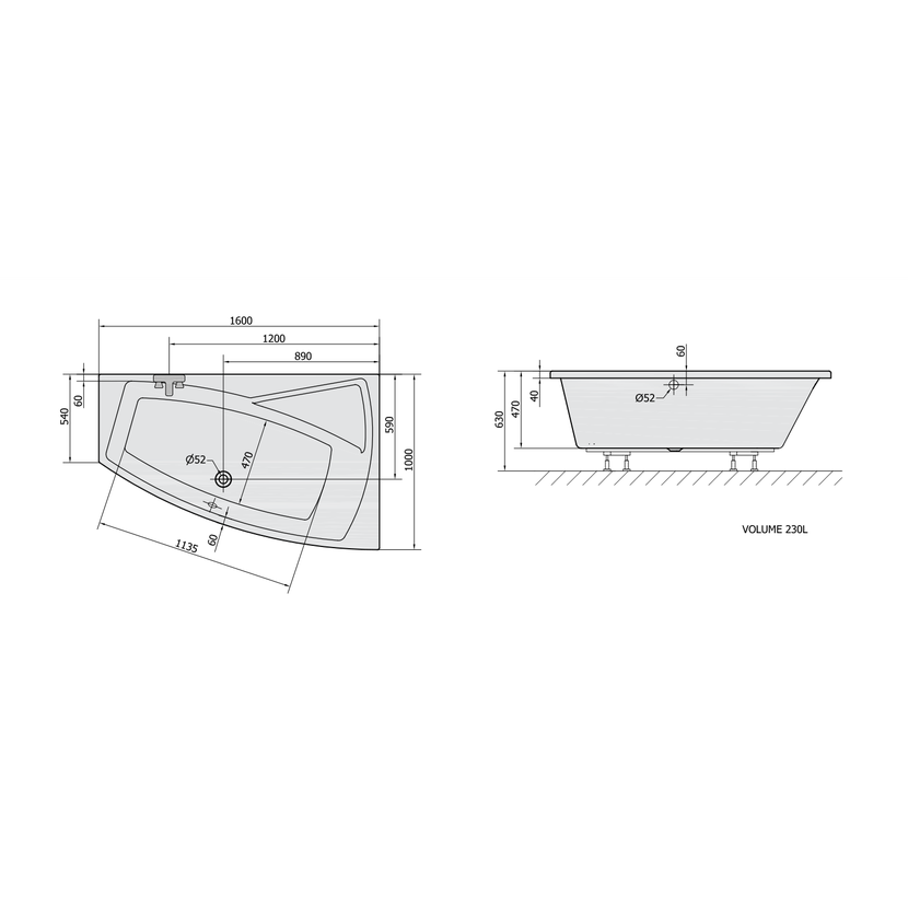 Parametry produktu  EVIA R asymetrická vana 160x100x47cm, bílá