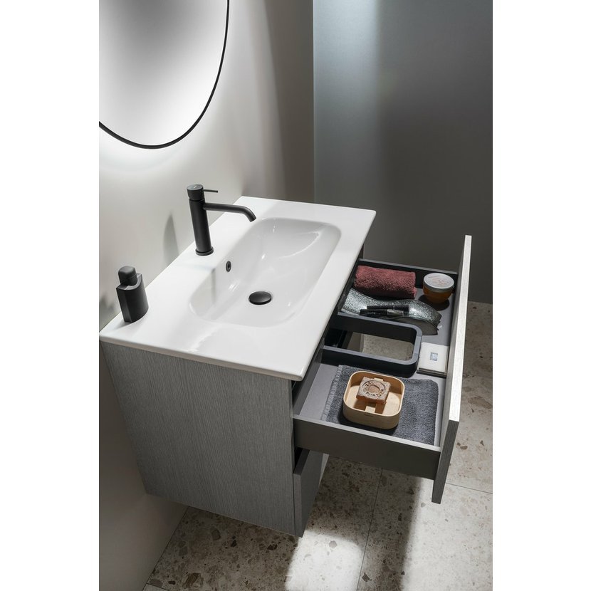 Zásuvky jsou vybaveny výsuvy s pomalým dojezdem a automatickým dovřením. Úložný prostor lze rozšířit přidáním doplňkových skříněk ESPACE. Nábytek je dodáván ve smontovaném stavu, připravený k okamžité instalaci.