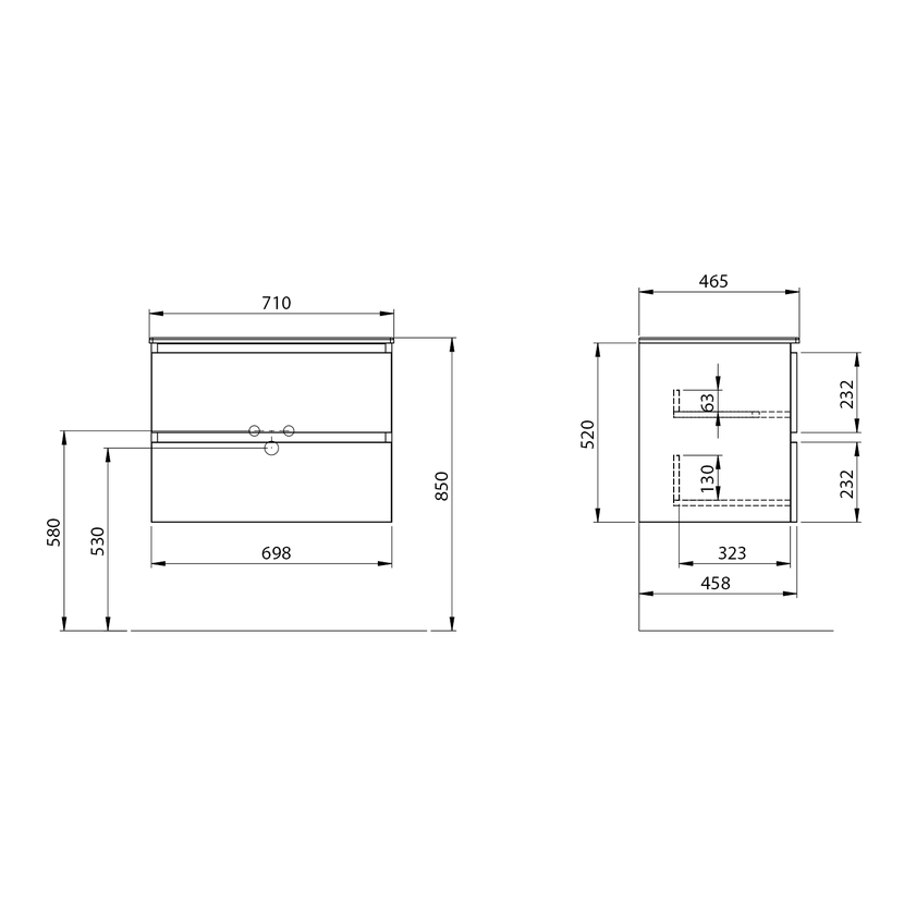 Zásuvky jsou vybaveny výsuvy s pomalým dojezdem a automatickým dovřením. Úložný prostor lze rozšířit přidáním doplňkových skříněk ESPACE. Nábytek je dodáván ve smontovaném stavu, připravený k okamžité instalaci.