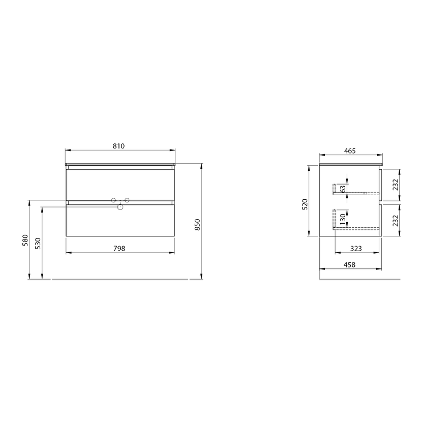 Zásuvky jsou vybaveny výsuvy s pomalým dojezdem a automatickým dovřením. Úložný prostor lze rozšířit přidáním doplňkových skříněk ESPACE. Nábytek je dodáván ve smontovaném stavu, připravený k okamžité instalaci.