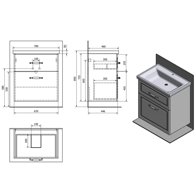 Parametry produktu FAVOLO umyvadlová skříňka 67x72,5x44,6cm, bílá mat