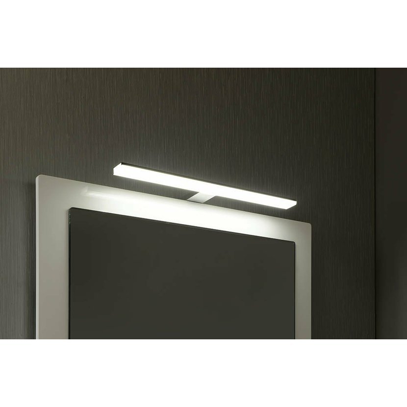 Moderní svítidlo bez LED driveru, připojuje se přímo na 230 V pomocí spojovacího boxu s ochranou IP44. Standardně se dodává s držákem za rám zrcadla nebo na zeď. Součástí balení je i univerzální držák, pomocí kterého lze instalovat svítidlo na galerku nebo přímo na zrcadlo (max. tloušťka zrcadla je 6 mm).