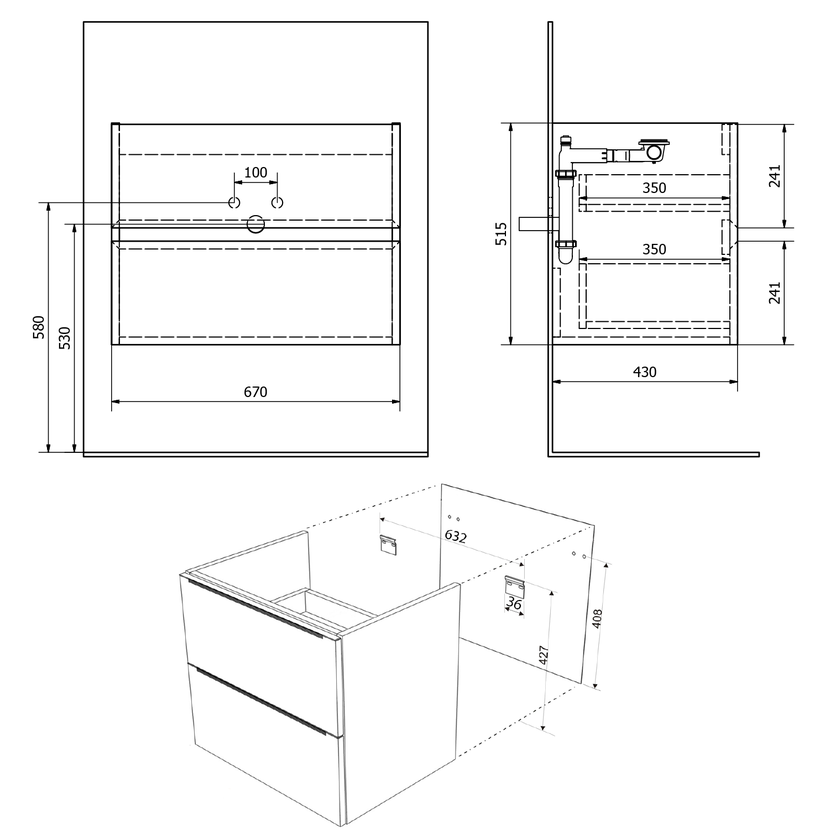 Pro umyvadlové skříňky lze vybírat mezi třemi druhy umyvadel: keramickým umyvadlem KARE, umyvadlem z litého mramoru GODIVA a betonovým umyvadlem QUADRADO. Mimoto lze umyvadlové skříňky doplnit deskou z umělého kamene (rockstone) a doplnit umyvadlem na desku.