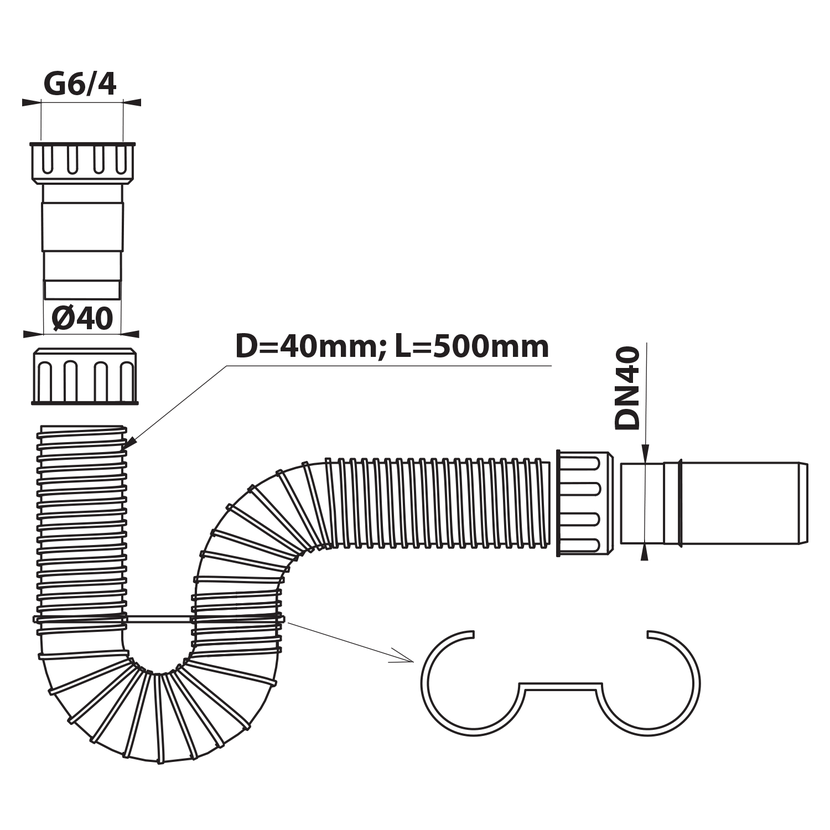 Parametry produktu  FLEXY dřezový sifon flexibilní 6/4", DN40, bílá