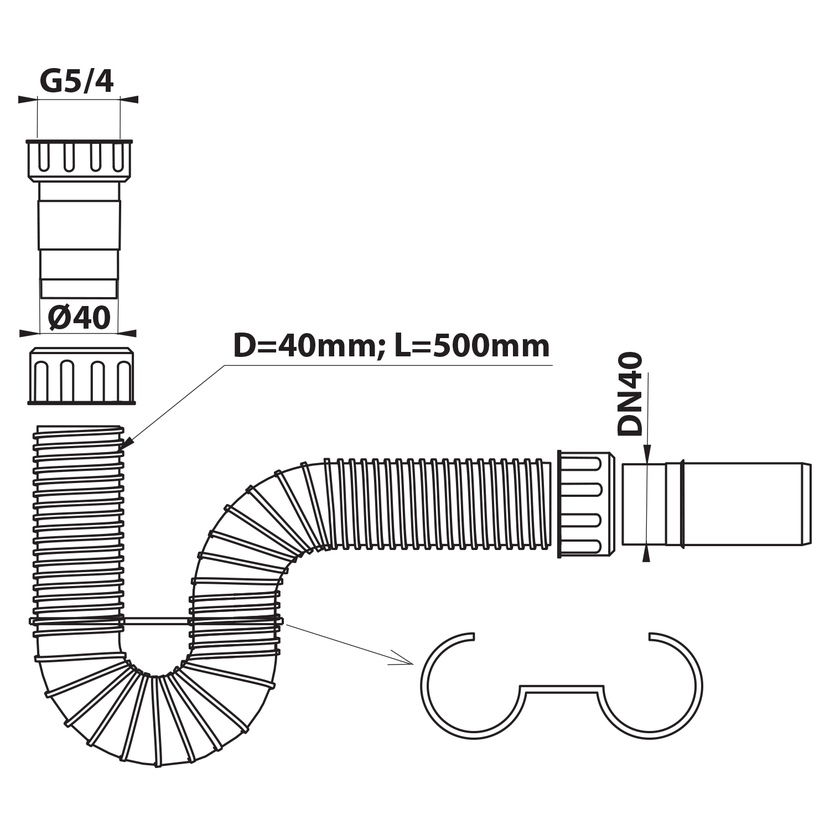 Parametry produktu  FLEXY umyvadlový sifon 5/4", DN40, bílá