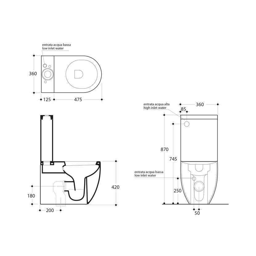 Parametry produktu FLO WC kombi mísa 36x60cm, spodní/zadní odpad, bílá