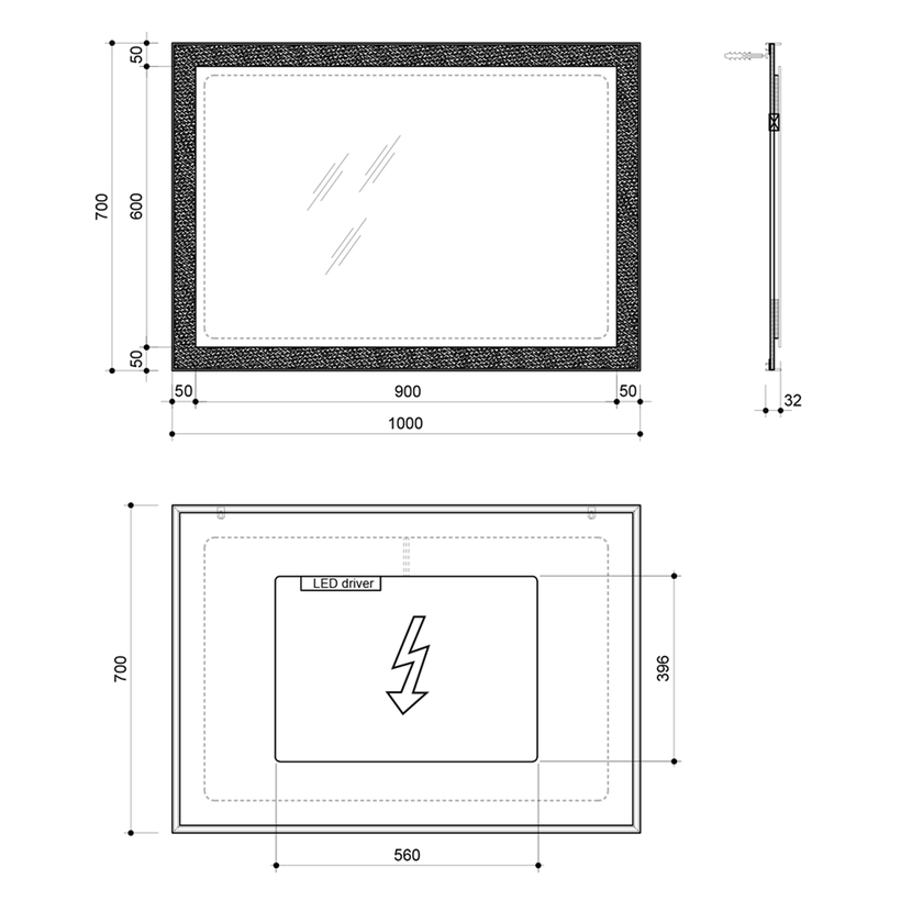 Technické parametry pro zrcadla s LED páskem: