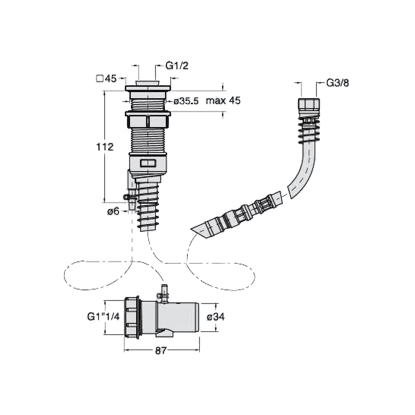 Parametry produktu  FOLLOW ME sprchová průchodka s odvodněním na okraj vany vč. hadice a drenážního kusu, hran