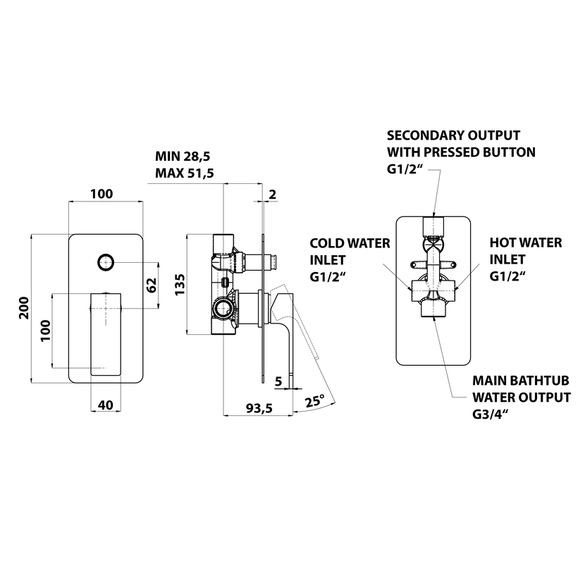 Parametry produktu  FORATA podomítková sprchová baterie, 2 výstupy, černá mat
