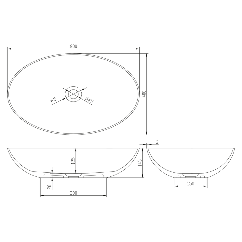 Parametry produktu FORMIGO betonové umyvadlo na desku, 60x40cm, šedá mat