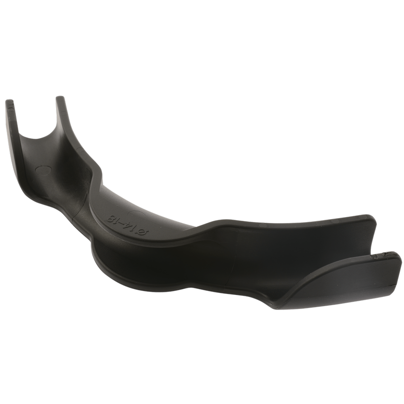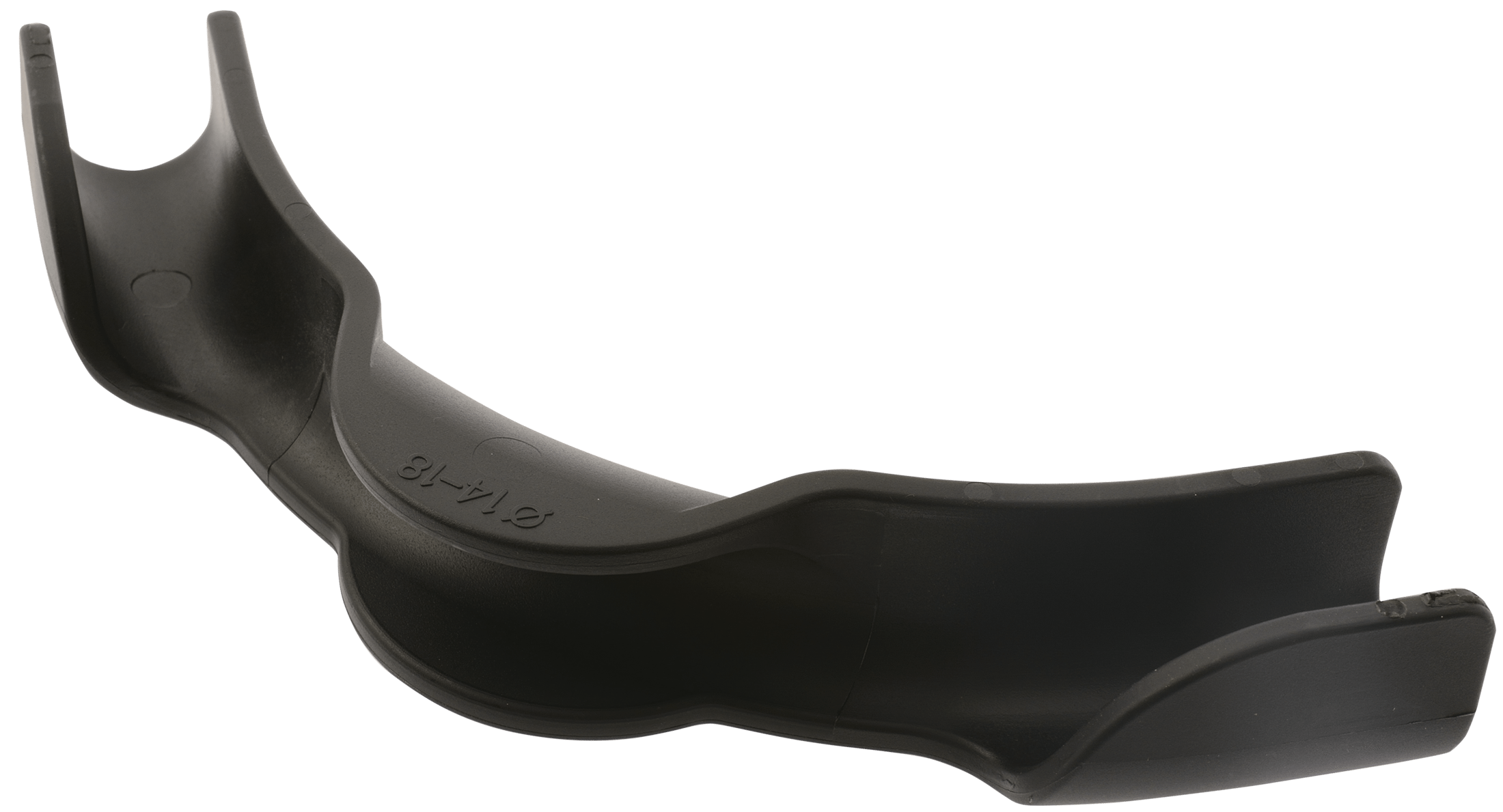 Pevný fixační oblouk 90° pro ochranu a fixování systémových trubek při průchodu stropem a přívodu do rozdělovače podlahového vytápění. Univerzální pro rozměry 14–18 mm