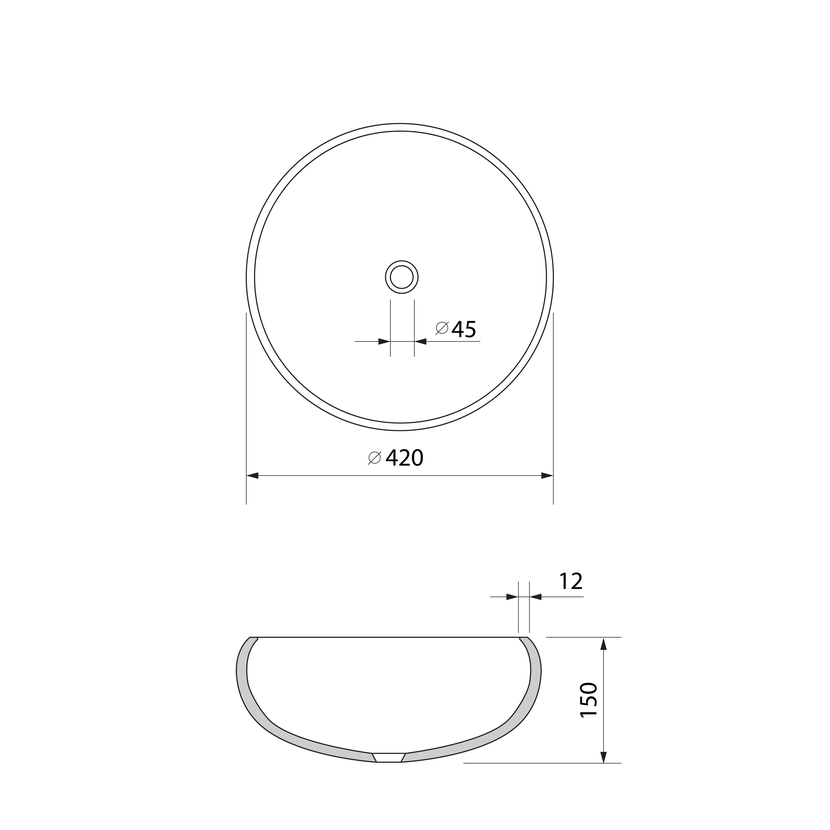 Parametry produktu  GAVIOTA skleněné gravírované umyvadlo na desku O 42cm, černá